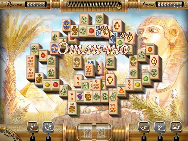 Рекомендуем запастись терпением: при всей своей простоте, маджонг способен бросить вызов даже самым опытным игрокам. Но не стоит отчаиваться, если решить головоломку сходу не получается. Ведь набираемые вами игровые очки открывают возможность пользоваться разнообразными подсказками, которые помогут преодолеть 50 уровней. Примечательно то, что для решения головоломки не обязательно очищать всё поле полностью — достаточно найти две золотых фишки, которые сделают вас победителем.