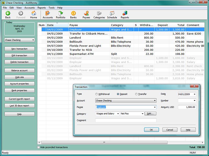 * Получайте информацию о своих счетах через Интернет: Если Ваш банк имеет онлайн-доступ, то AceMoney сможет скачать информацию о счете. Программа поддерживает ведущие финансовые форматы QIF и OFX для работы с европейскими и американскими банками.