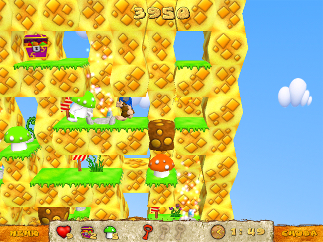 И, наконец, в "Логическом" режиме придется изрядно напрячь извилины. Вам необходимо помочь нашему герою решить множество головоломок, обойти опасные пропасти, обрушивающиеся деревянные мостки и другие хитроумные ловушки.