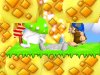 Будьте аккуратны — встреча с монстрами грозит потерей одной жизни. Но и наш веселый герой тоже не лыком шит: он может сбросить на врага булыжник. Против такого весомого аргумента ни один саблезубый хищник возразить уже ничего не сможет.