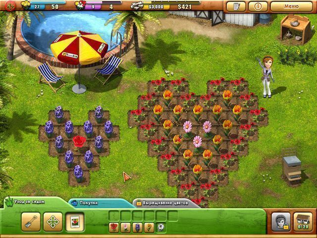 Вы хотите одержать победу в конкурсе? Постарайтесь выполнить три важных условия: цветов должно быть много, они должны быть разными и хорошо продаваться. Состояние оранжереи легко отслеживать с помощью специальных индикаторов.