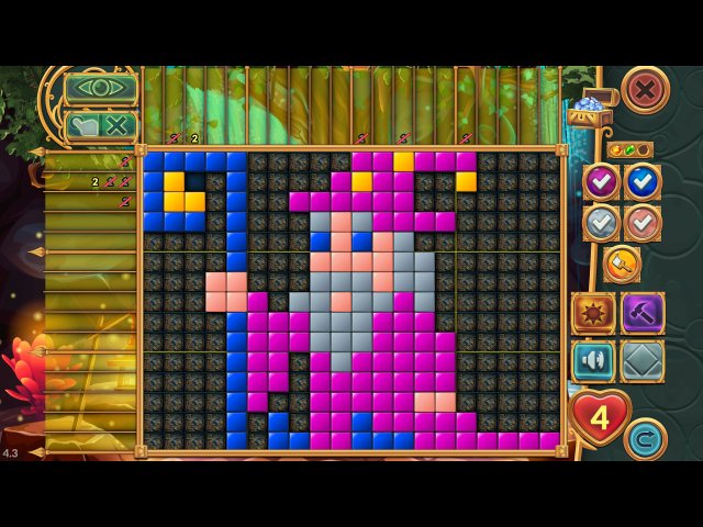 Для успеха операции вам предстоит нарисовать на игровом поле кубиками не одну задуманную картинку. Сверху и снизу указано количество блоков цветных кубиков в каждой строке или столбце и их последовательность. Чтобы не терять жизни, открывайте только те клетки, где, по вашему мнению, должны быть цветные кубики. Бонусы "Солнце" и "Молоток" помогут быстро справиться с ситуацией, когда вы сомневаетесь, какой ход сделать следующим.