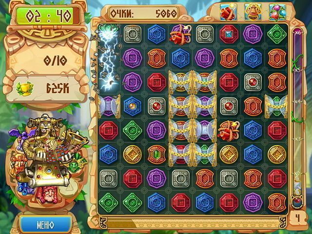 Древние индейские боги будут помогать вам во время экспедиции. Чтобы привлечь их на свою сторону, необходимо доказать, что вы достойны их помощи. Кроме того, вы сможете использовать тотемы – магические артефакты, улучшающие ваши характеристики. Собирайте кристаллы, выполняйте дополнительные задания, и вы получите в свое распоряжение огромную силу, способную увеличить ваши возможности по собиранию сокровищ во много раз!